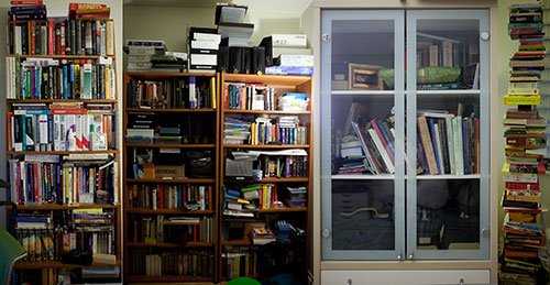 My wife and I are both avid readers—one of our common dreams is to someday have a home with a dedicated room for a library. We are squarely in the demographic for the Bookshelf porn website. Here is a montage of mine alone, not including the books I reluctantly had to consign to storage, or those in my parents’ basement back in France: