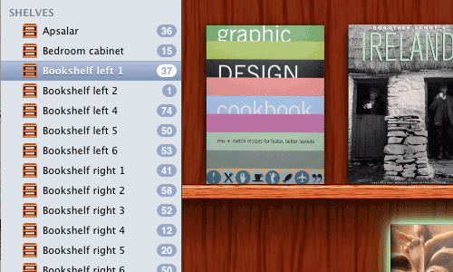 With well over 900 books, I needed a system to manage. At some point I discovered Delicious Library has a writeable location field in its database for every item, and you can create virtual shelves to organize your books. I literally have one DL shelf for each shelf in my bookshelves, one for each box in storage, and one for all the books I keep at work. This way, I can browse shelf by shelf or box by box, or conversely look up the location of a book I need.